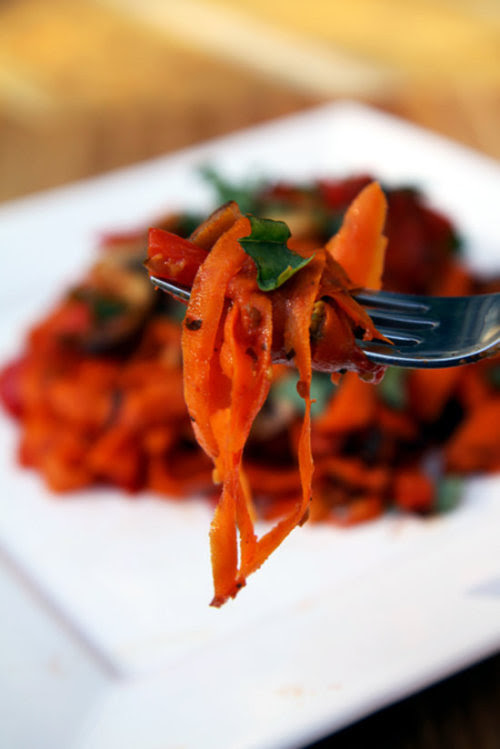 Carrot Fettuccine with Mushrooms & Red Pepper